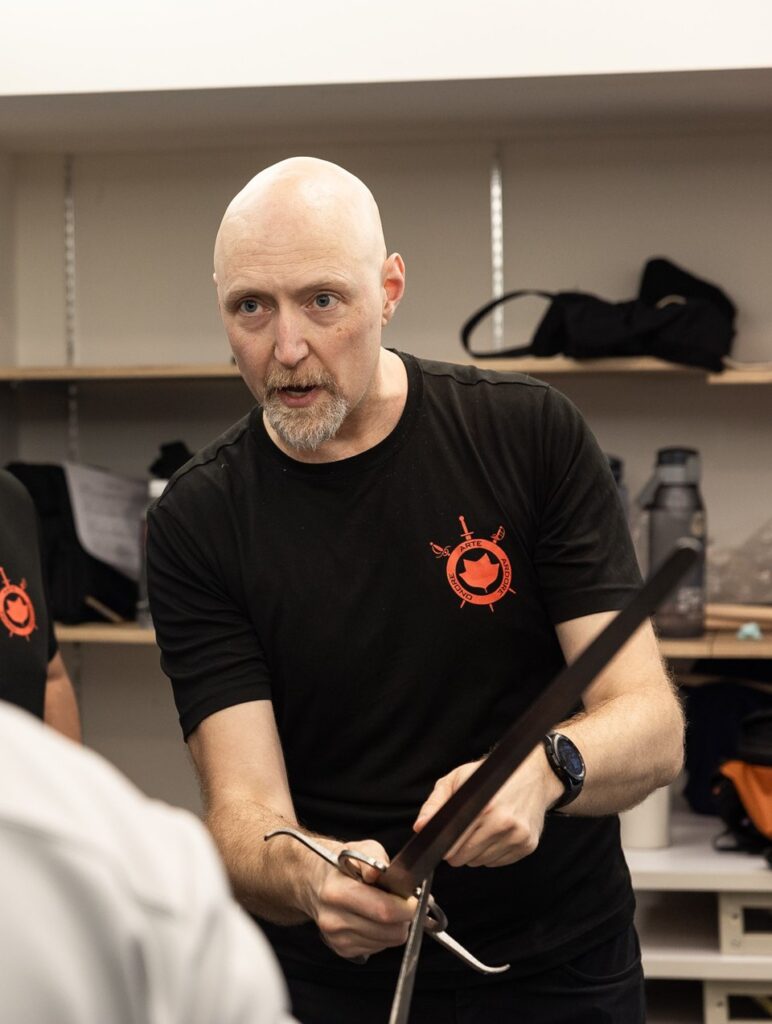 奇美博物館首度推出兵器體驗活動,由西洋武術大師戴文.伯爾曼(Devon Boorman)親臨授課。圖-Devon Boorman提供